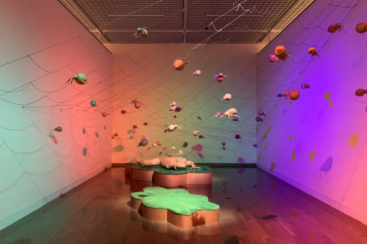 「カエルサイズになったときにクモはどう見えるかとか、大きなクモの巣の恐怖感とか、カエルの視点になって過ごしてもらうために作った展示です。私は、人間として生きる上で一番重要なのが想像力だと思っています。日常でもめ事が起きるのは、相手のことを考える想像力が欠けているからではないかと。それは人だけじゃなく、他の生き物や地球に対しても同じ。なので、この展示が自分ではない側の視点を想像するきっかけになればいいなと考えています」