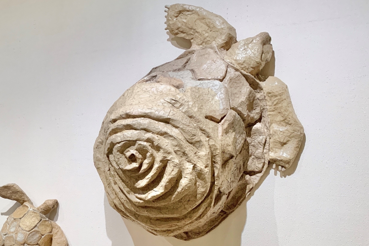 古紙ダンボールで作られたクジラやライオンなど、いきいきとした海や陸の生き物たちの立体作品、約130件を展示する同展を取材しました。玉田さんのコメントを交えながら、会場の様子や見どころについてお伝えします。