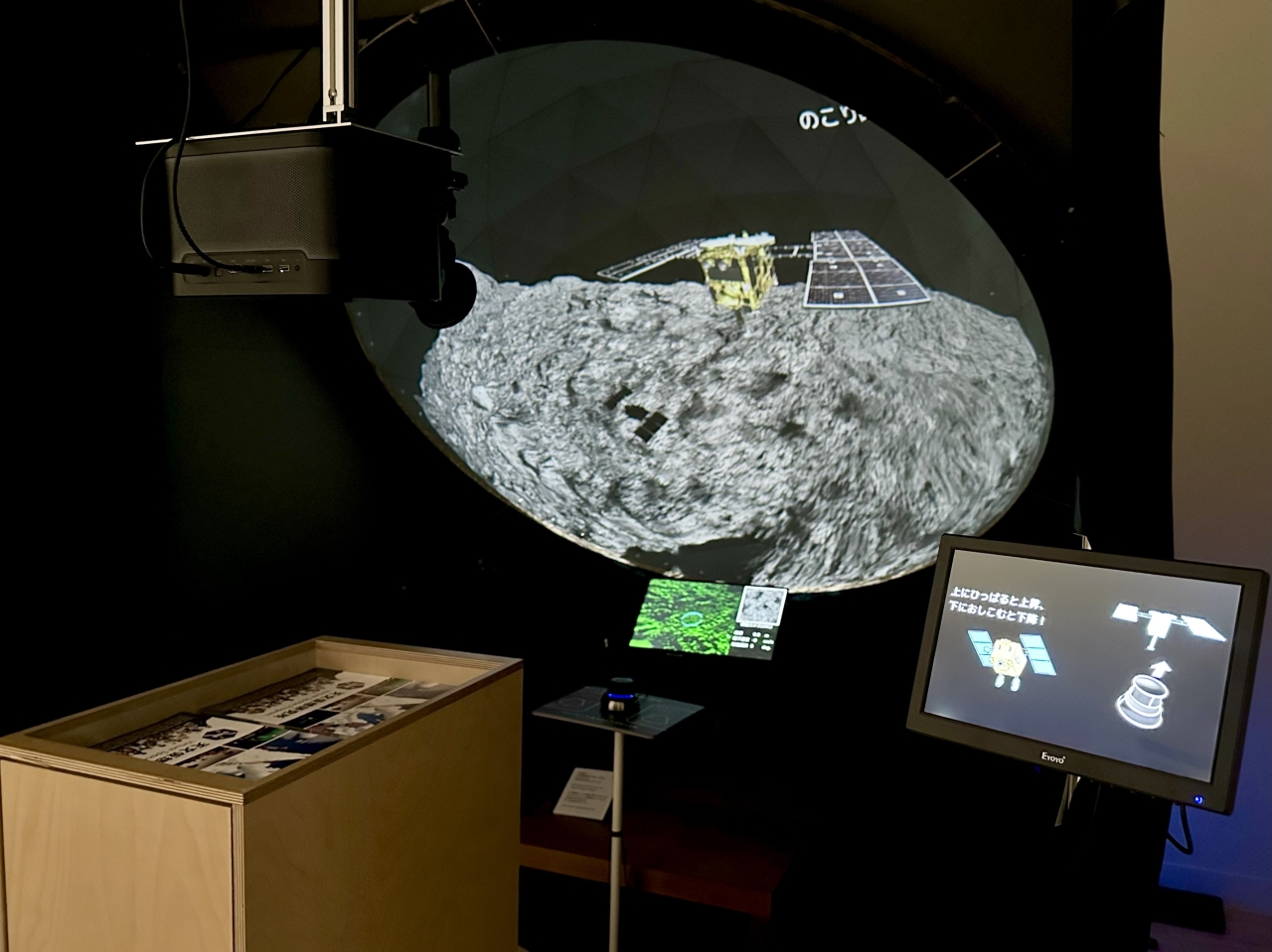 ほかにも、2025年に退役したH-IIAロケット最終号機の打上げ時に、射点から約3km離れた地点で記録された振動を、ウーファースピーカーによって追体験できるJAXAの《打上げ振動体験》(2026)や、コントローラーを使って小惑星リュウグウへのタッチダウンに挑戦できる、JAXA宇宙科学研究所(ISAS)/天文仮想研究所(VSP)/東京藝術大学による《はやぶさ2 タッチダウン・チャレンジ(東京藝大ドーム検証版)》(2024)など、大人も子供も楽しめる作品が展開されています。